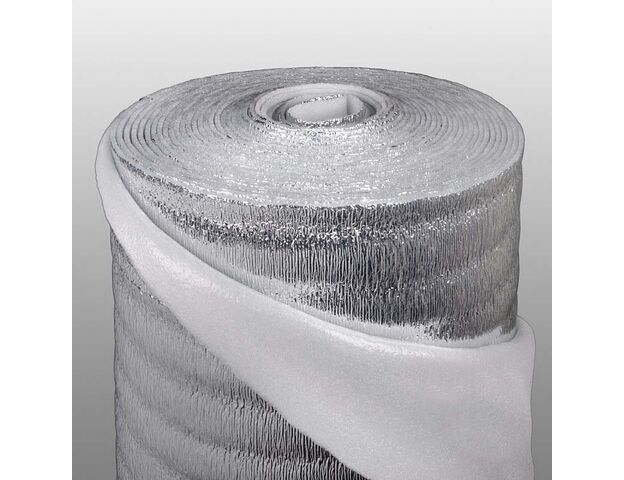 Рулон теплоизоляционный Energoflex Super AL с покрытием алюминиевой фольгой ROLS ISOMARKET 15мм х 1м х 7м - листовой теплоизоляционный материал с закрытой ячеистой структурой для изоляции труб большого диаметра, арматуры и емкостей различного назначения. Пенополиэтилен дает низкую теплопроводность, высокую влаго- и парозащищенность, гибкость и прочность поверхности, а рулоны из этого материала отличаются высокой энергоэффективностью, технологичностью монтажа, долговечностью, санитарной и экологической безопасностью. Данный товар стоей к агрессивным строительным материалам: к цементу, бетону, гипсу, извести.