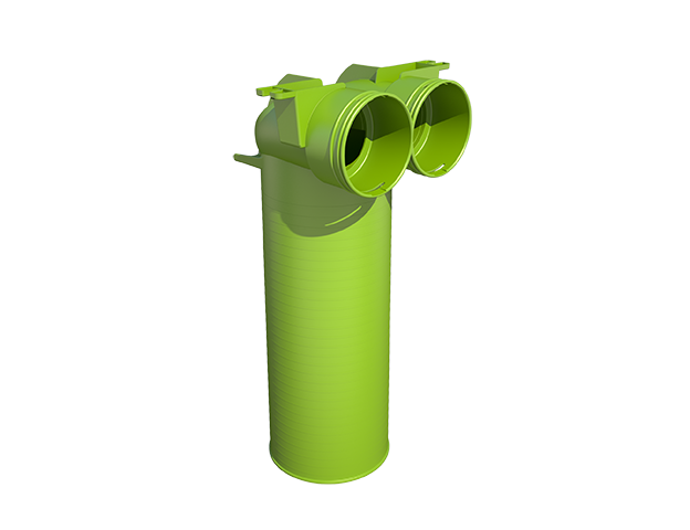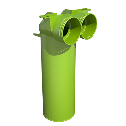 Потолочный / настенный адаптер 90° для подключения диффузора DN 125 к воздуховоду 2 х DN 95/76. Монтажная длина 325 мм. Материал корпуса антистатический и антибактериальный полипропилен.