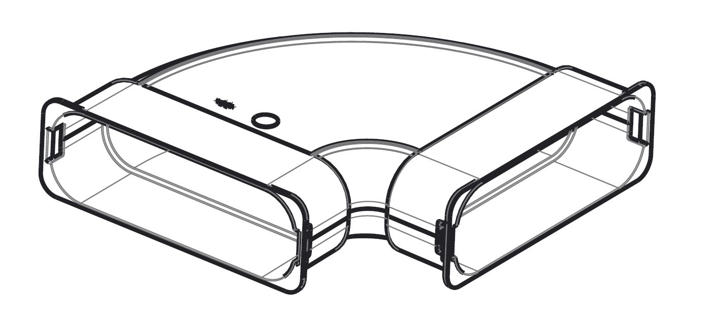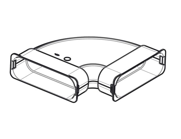 Угловой горизонтальный адаптер 90° для соединения плоских воздуховодов 50 x 140 (арт. 2577582). Материал элемента антистатический и антибактериальный полипропилен.
