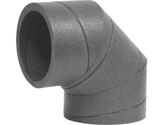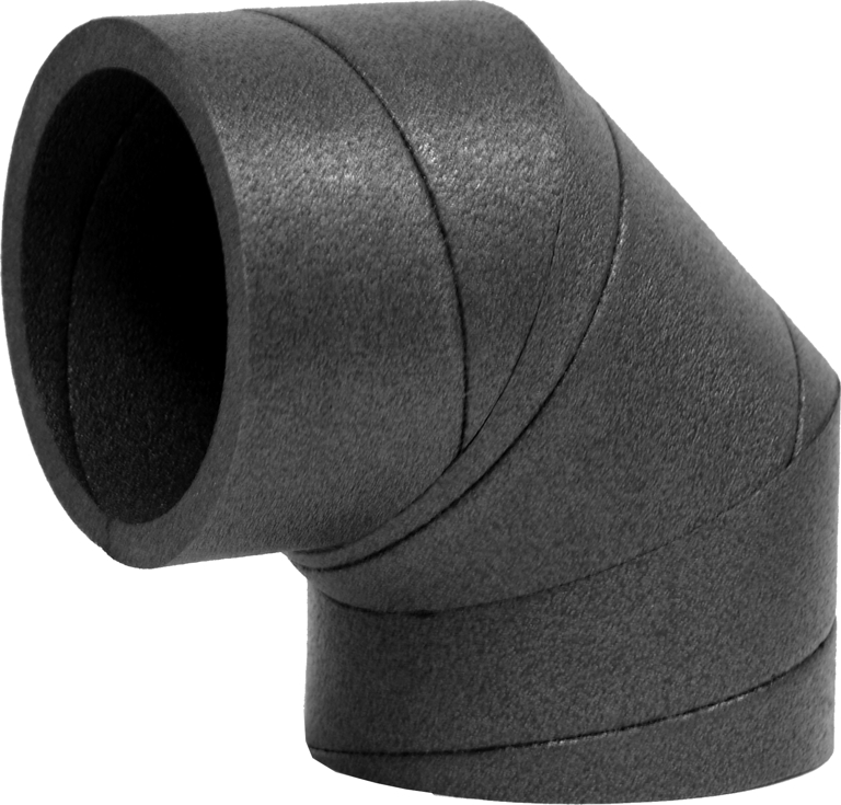 Отвод 90° воздуховода ISO DN 125. Толщина стенки 16 мм. Материал вспененный полиэтилен высокой плотности. Цвет - темно-серый.