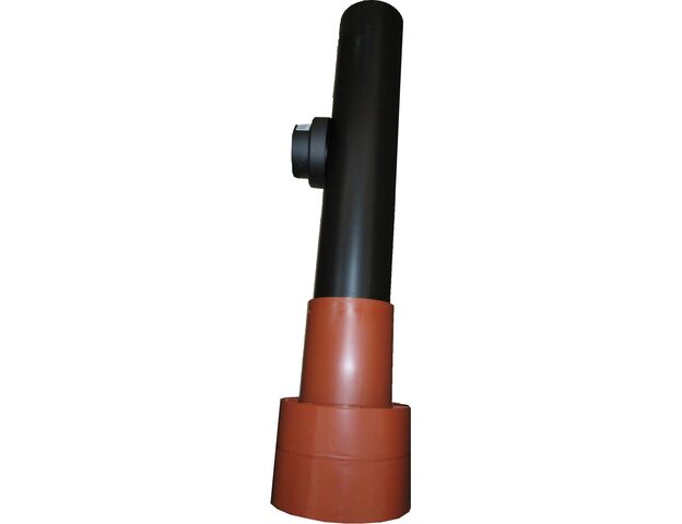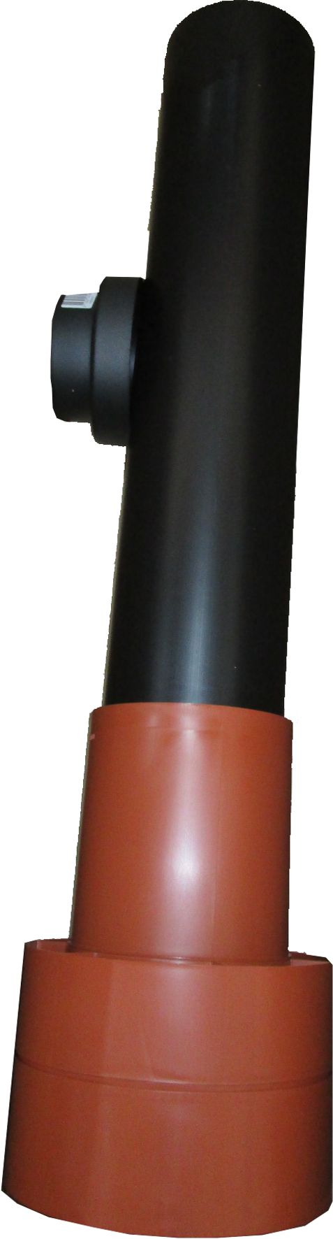 Патрубок вентиляционного канала DN 125 для прохода через кровлю. Двустенная конструкция пенополиуретановой трубы не замерзает, не подвержена коррозии и образованию конденсата. Дефлектор предотвращает воздействия ветра на работу системы вентиляции. Общая длина элемента 1159 мм. Цвет видимой части: красный.