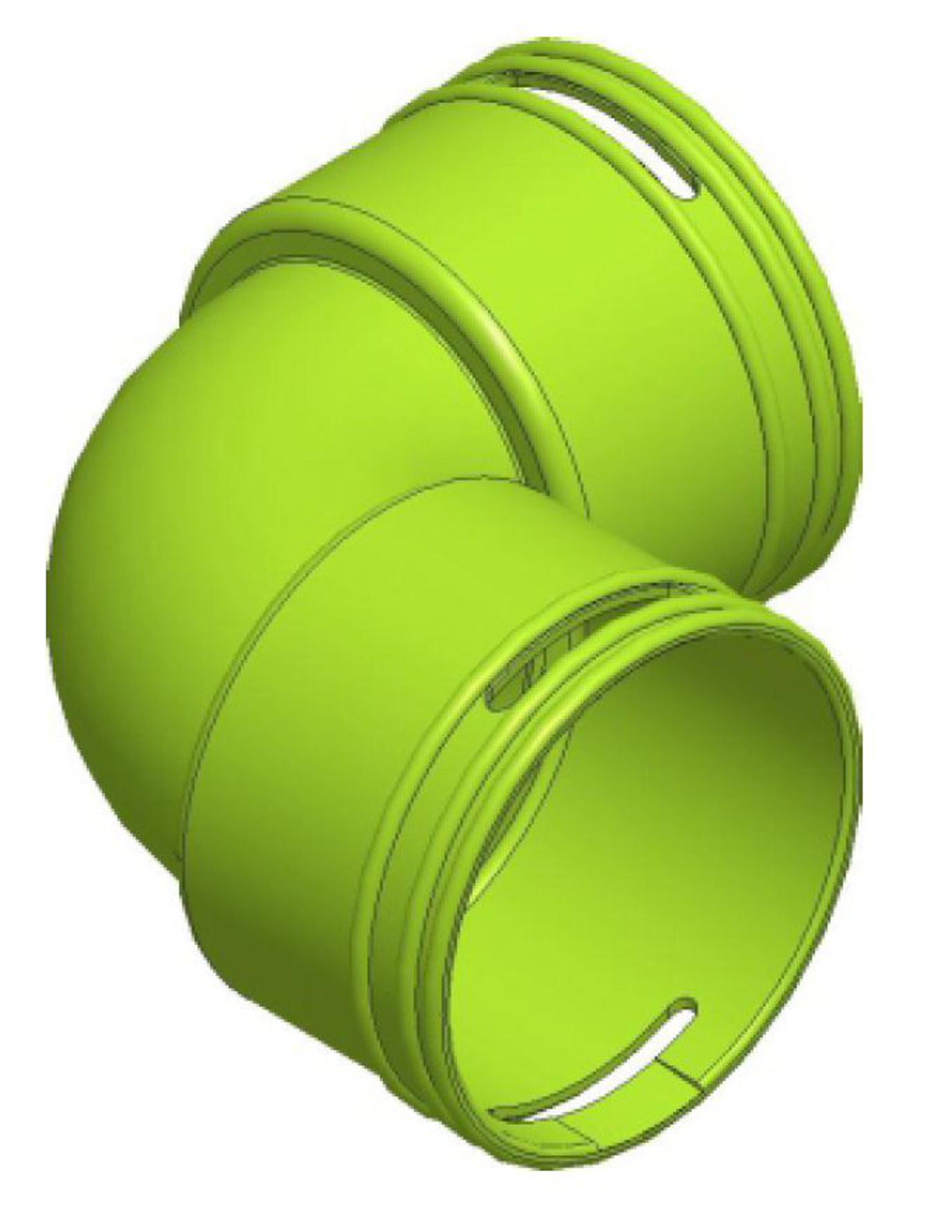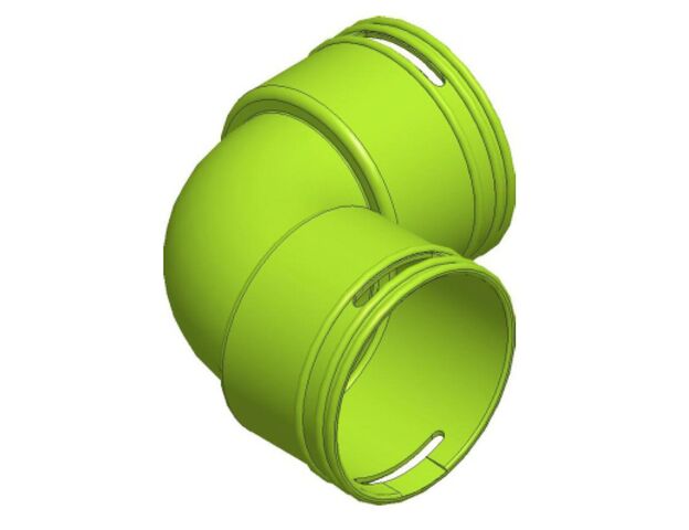 Угловой горизонтальный адаптер 90° для соединения воздуховодов DN 75/63 (арт. 2577413). Материал корпуса антистатический и антибактериальный полипропилен.