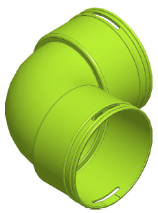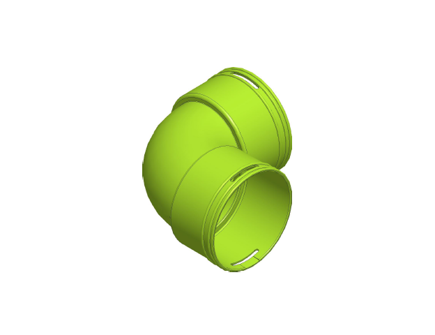 Угловой горизонтальный адаптер 90° для соединения воздуховодов DN 90/76 (арт. 2577886). Материал корпуса антистатический и антибактериальный полипропилен.