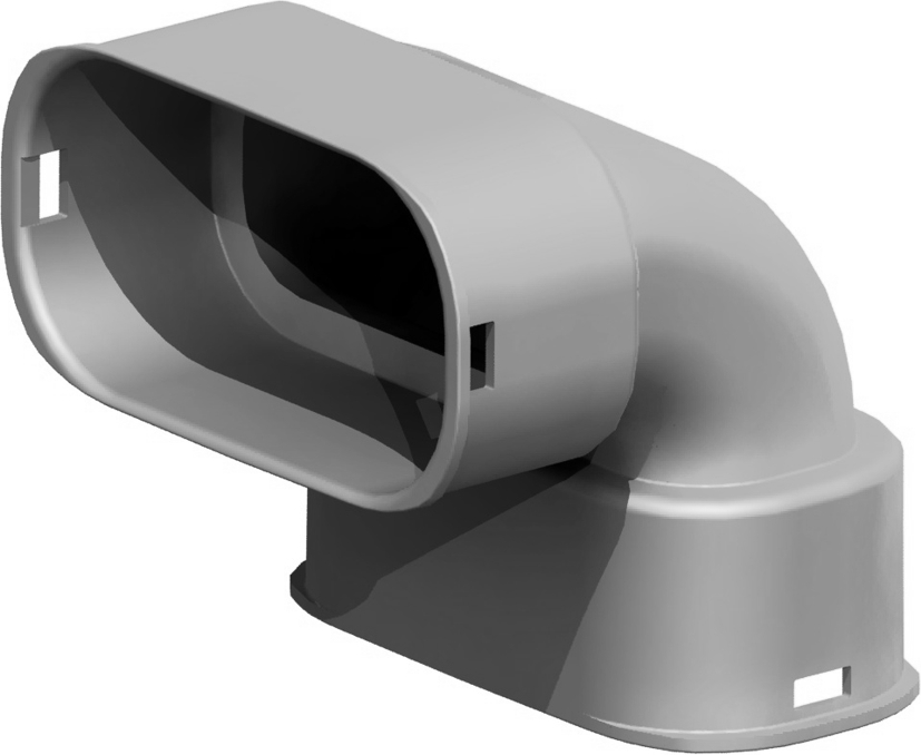 Угловой вертикальный адаптер 90° для соединения плоских воздуховодов 50 x 100 (арт. 2576163). Материал корпуса антистатический и антибактериальный полипропилен.